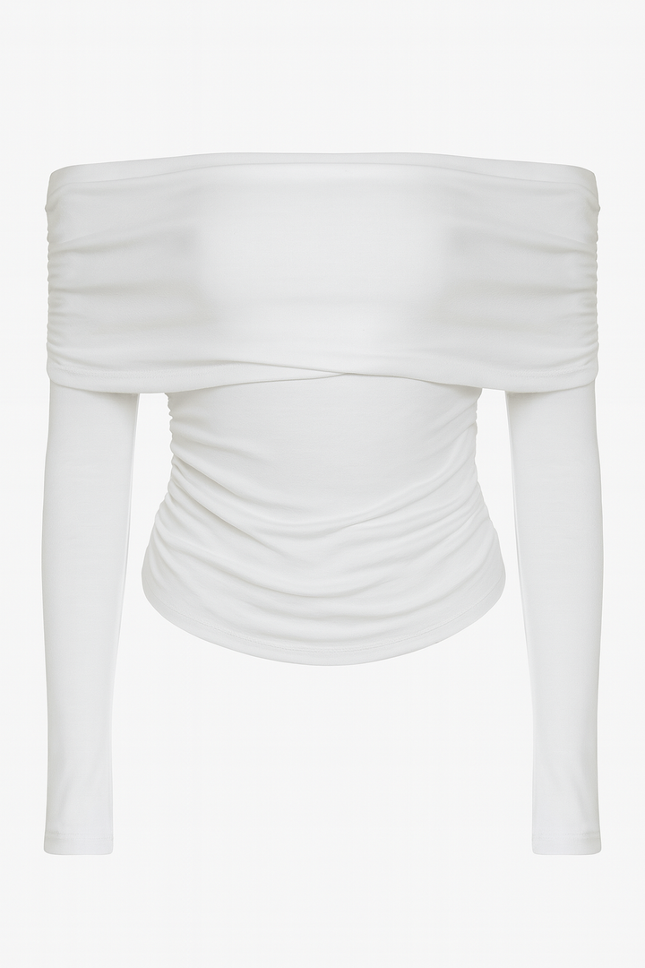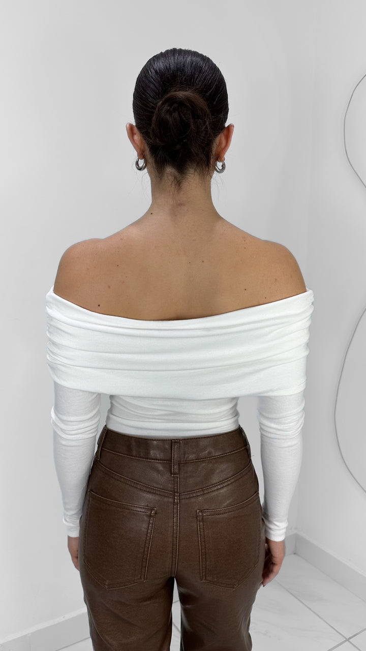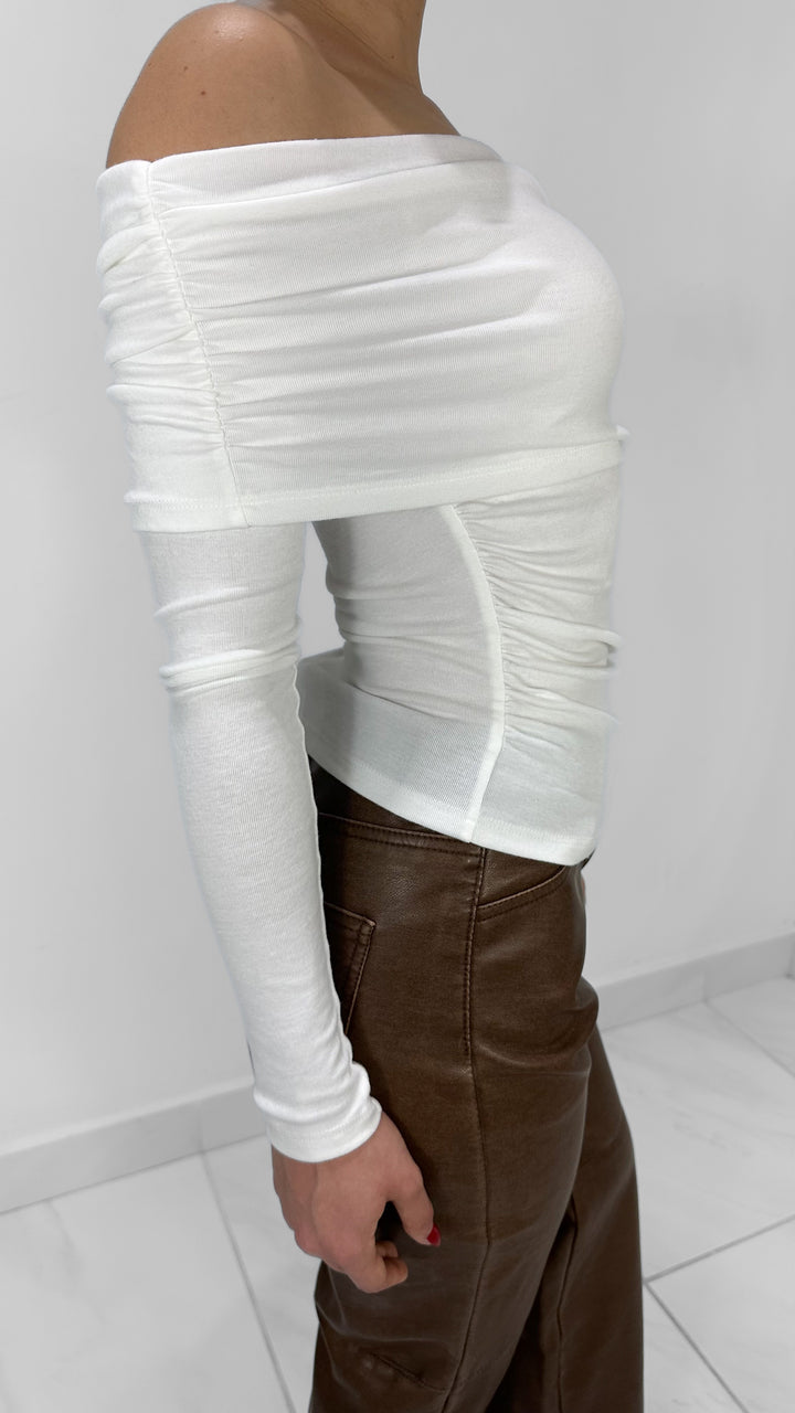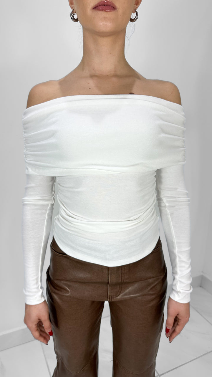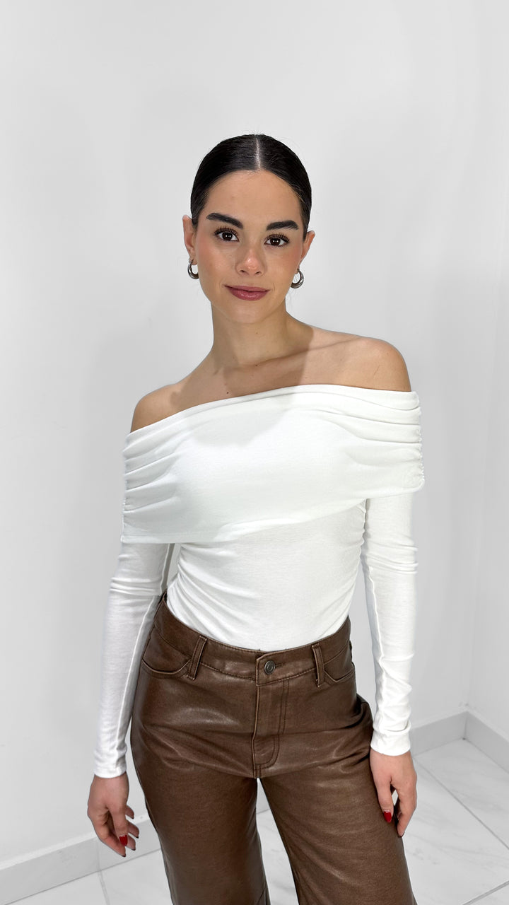 BLUSA BLANCA OFF-SHOULDER DRAPEADA
