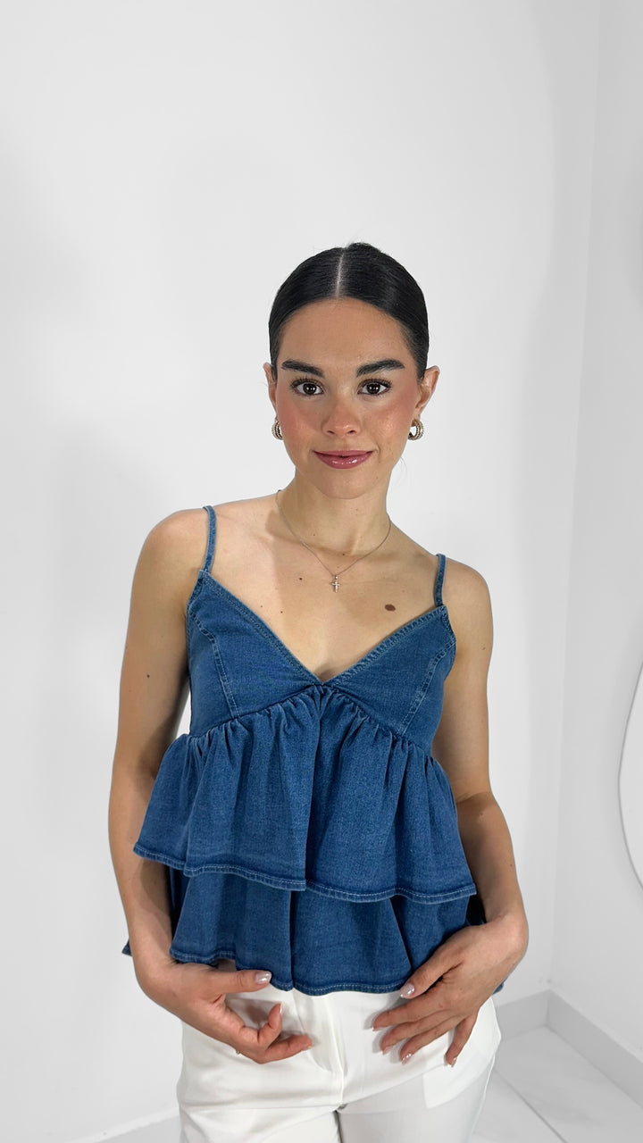 BLUSA DENIM BABYDOLL DE TIRANTES