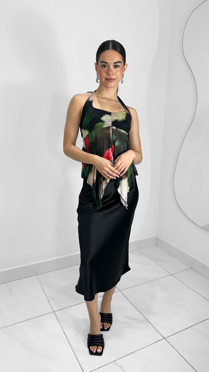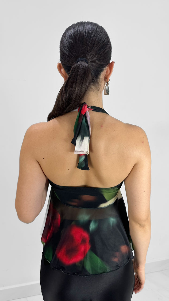 BLUSA HALTER MESH ESTAMPADO FLORES