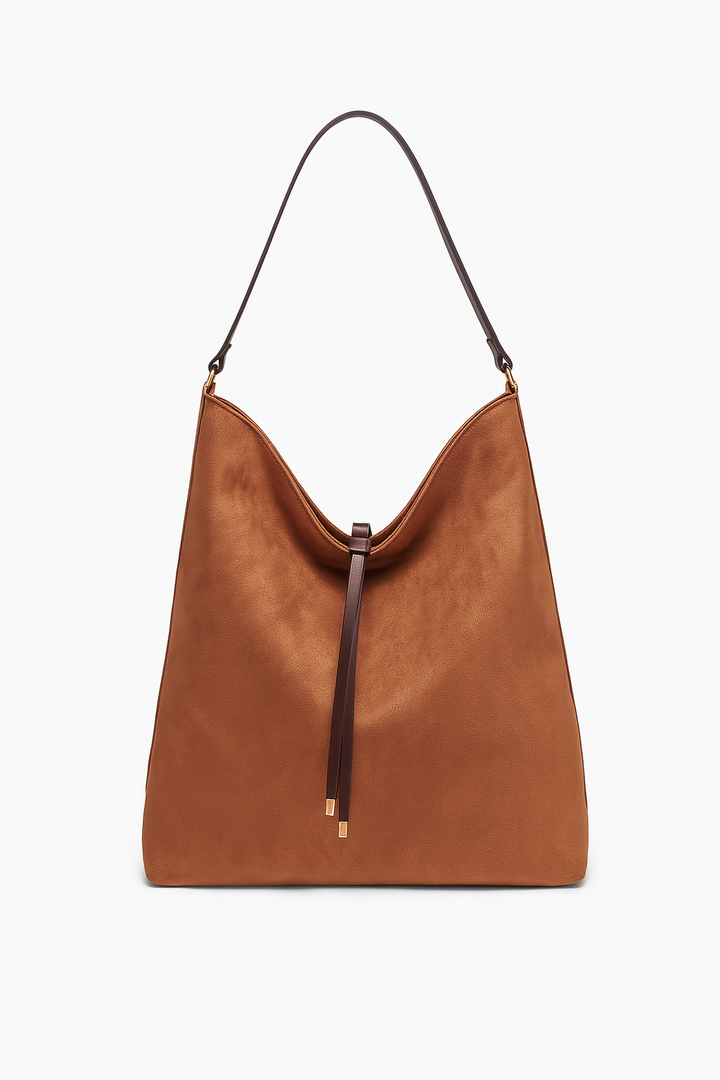 Bolsa shopper suede cognac minimalista
