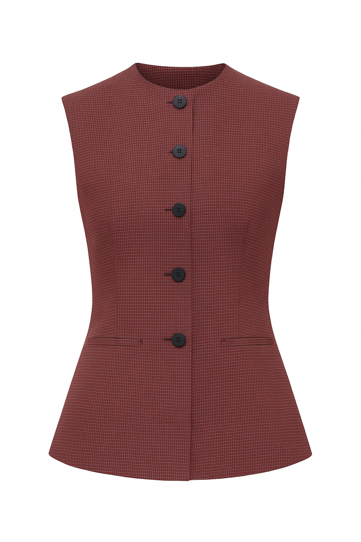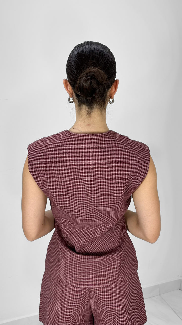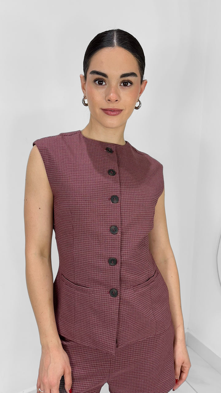 CHALECO DE CUADROS CON BOTONES BURGUNDY