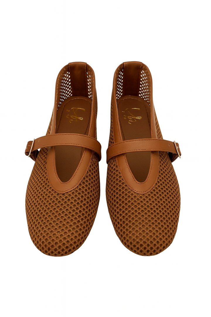 Una opción fresca y versátil que combina estilo y comodidad. Estas ballerinas en tono camel destacan por su diseño calado tipo malla, ideal para mantener ligereza y transpirabilidad durante el día. Incorporan una pulsera con hebilla al empeine que aporta seguridad y un toque femenino clásico. Su color neutro las convierte en el complemento perfecto para looks casuales, frescos y effortlessly chic, combinando tanto con jeans como con vestidos ligeros.
