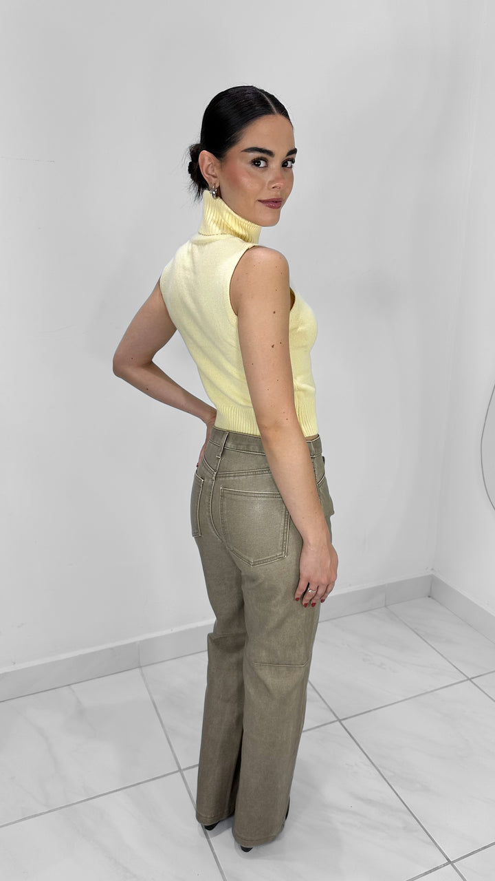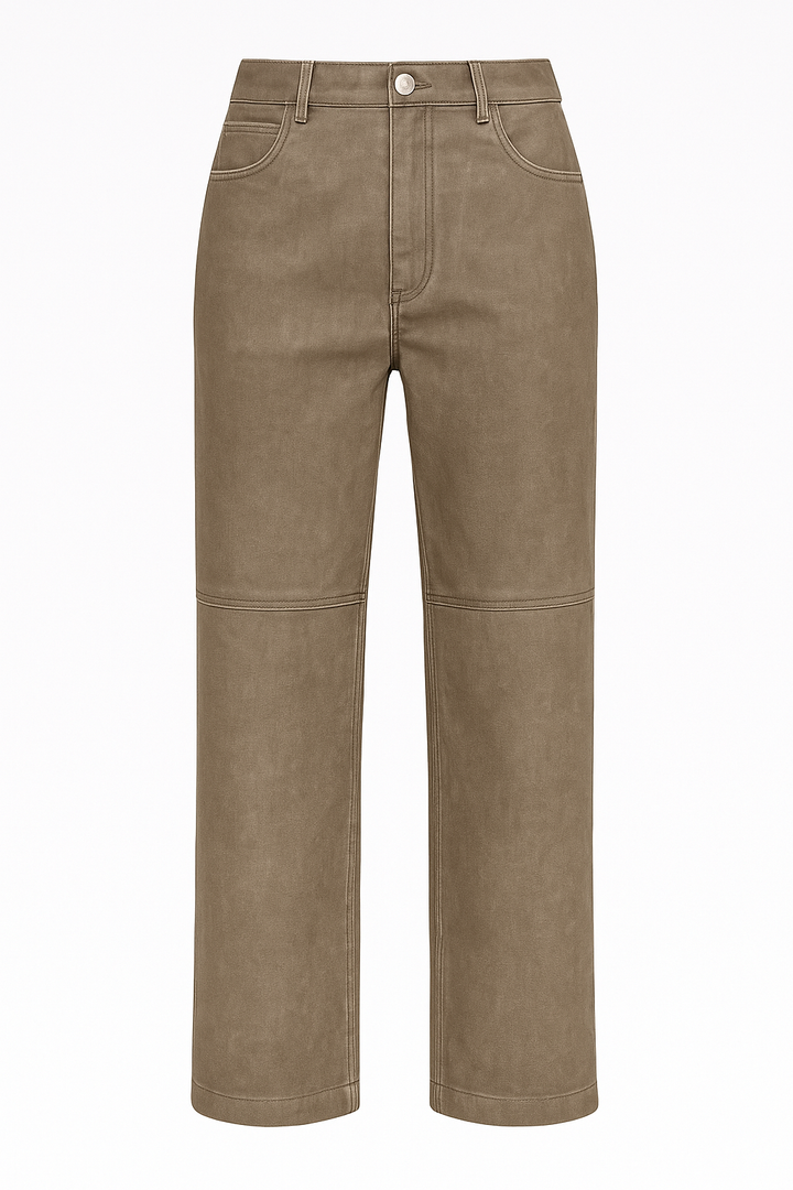 PANTALÓN LARGO DE PIEL CON ACABADO DESGASTADO TAUPE