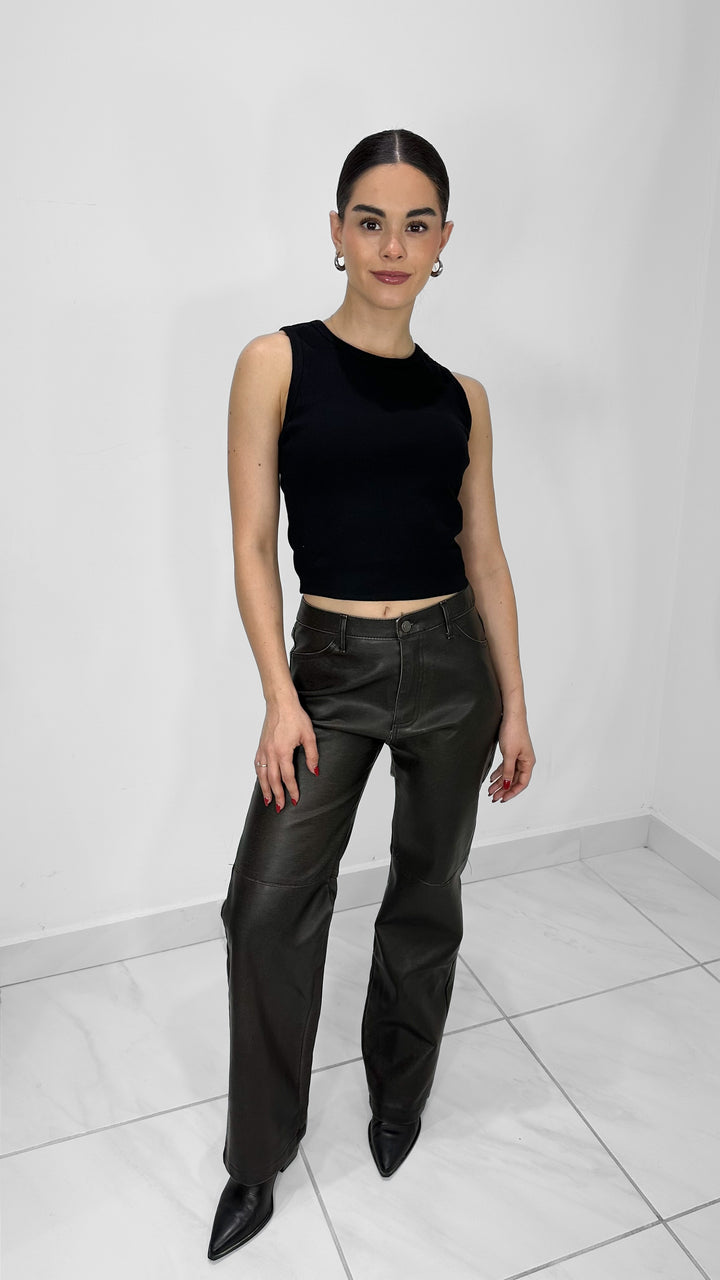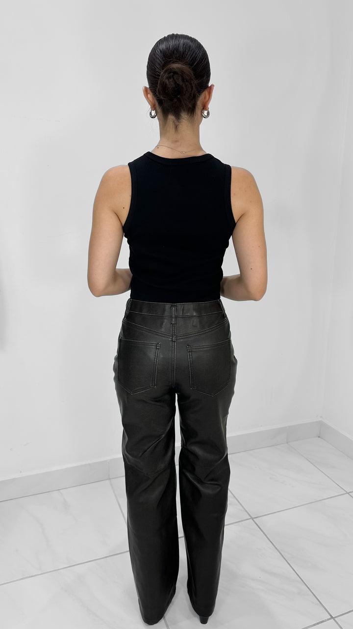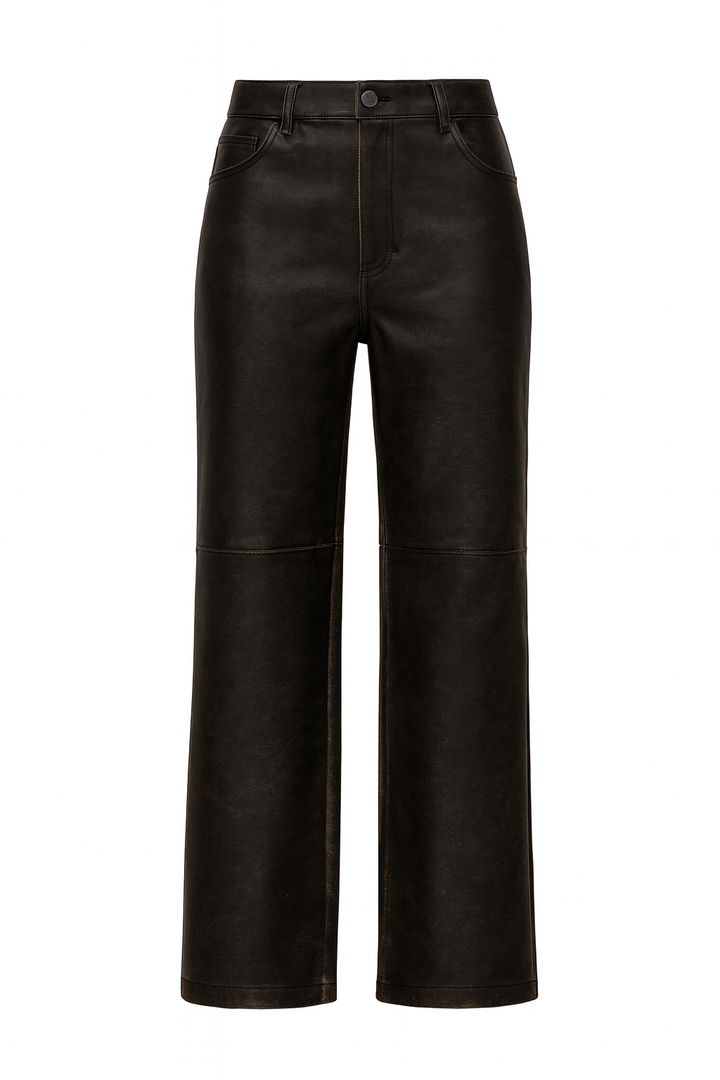 PANTALÓN LARGO DE PIEL CON ACABADO DESGASTADO NEGRO