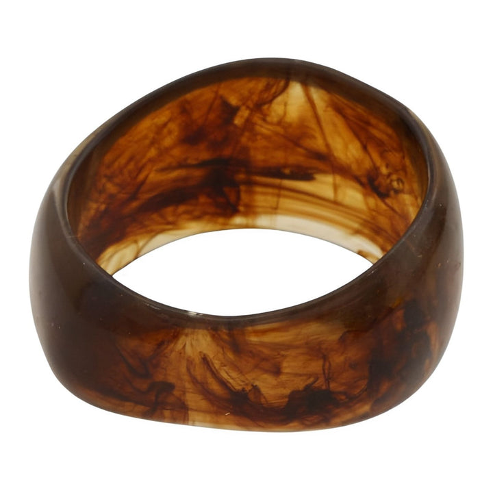 Pulsera rígida ancha en tono marrón con acabado efecto carey marmoleado. Su diseño versátil y sofisticado añade un toque moderno y elegante, ideal para complementar cualquier look con estilo atemporal.