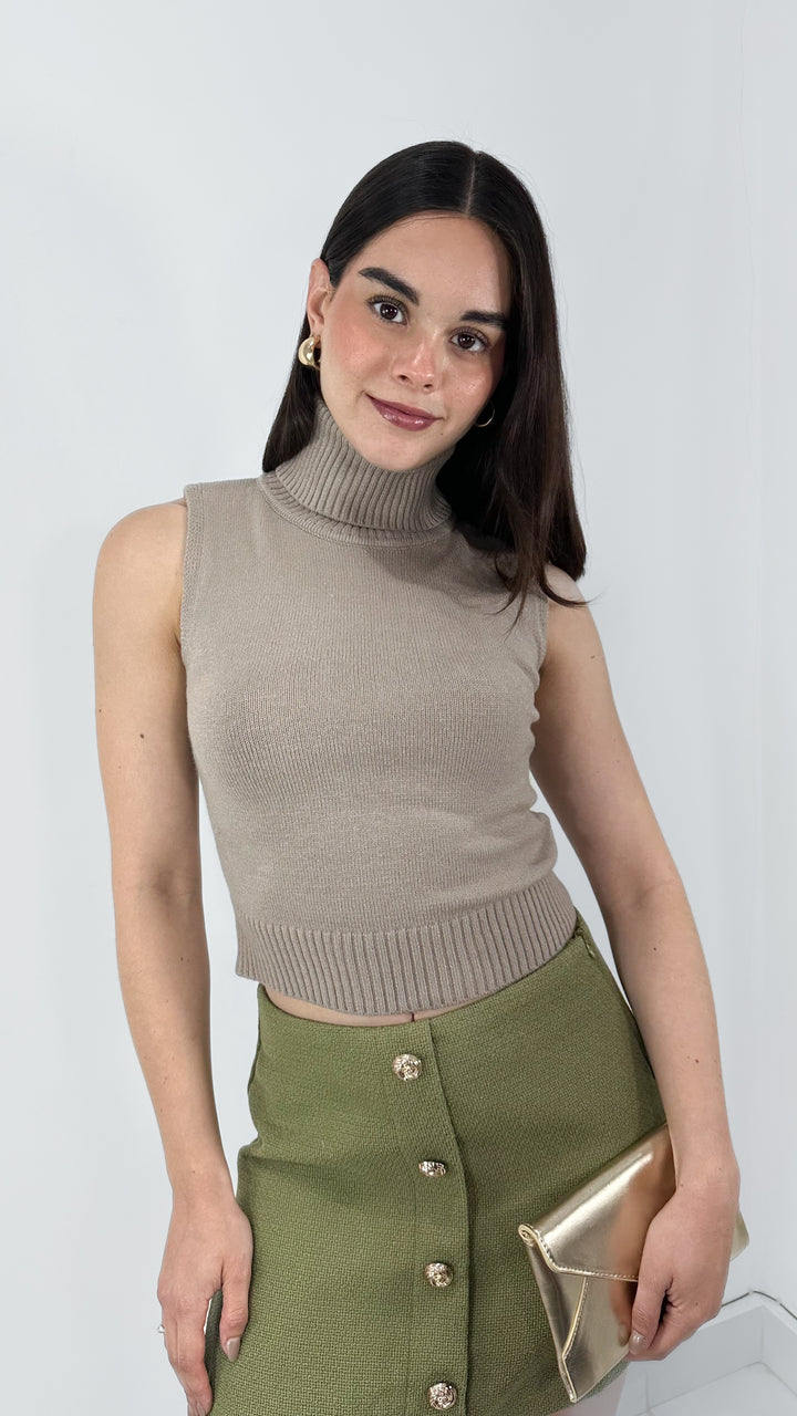 Top tejido sin mangas con cuello alto
