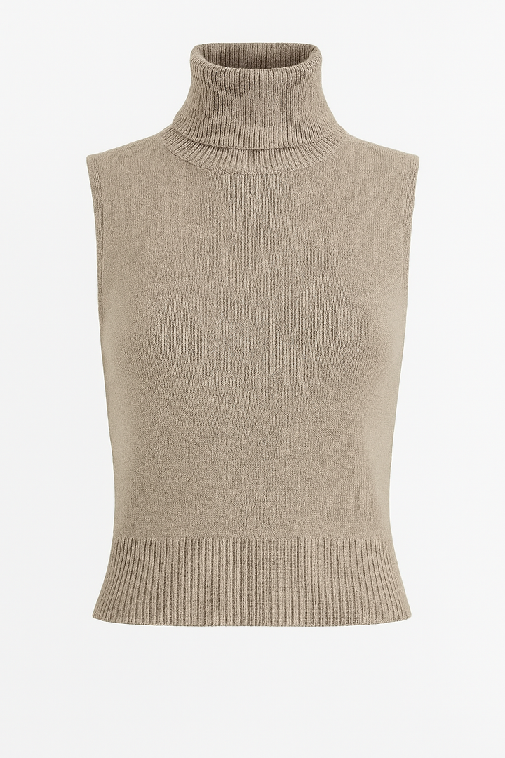 Un básico sofisticado que no puede faltar en tu clóset. Este top tejido color mocha sin mangas combina comodidad y estilo gracias a su diseño con cuello alto acanalado y ajuste ceñido que estiliza la silueta. Su textura suave y el detalle de rib en el dobladillo lo hacen ideal para looks versátiles, desde combinaciones casuales hasta outfits más elegantes.
